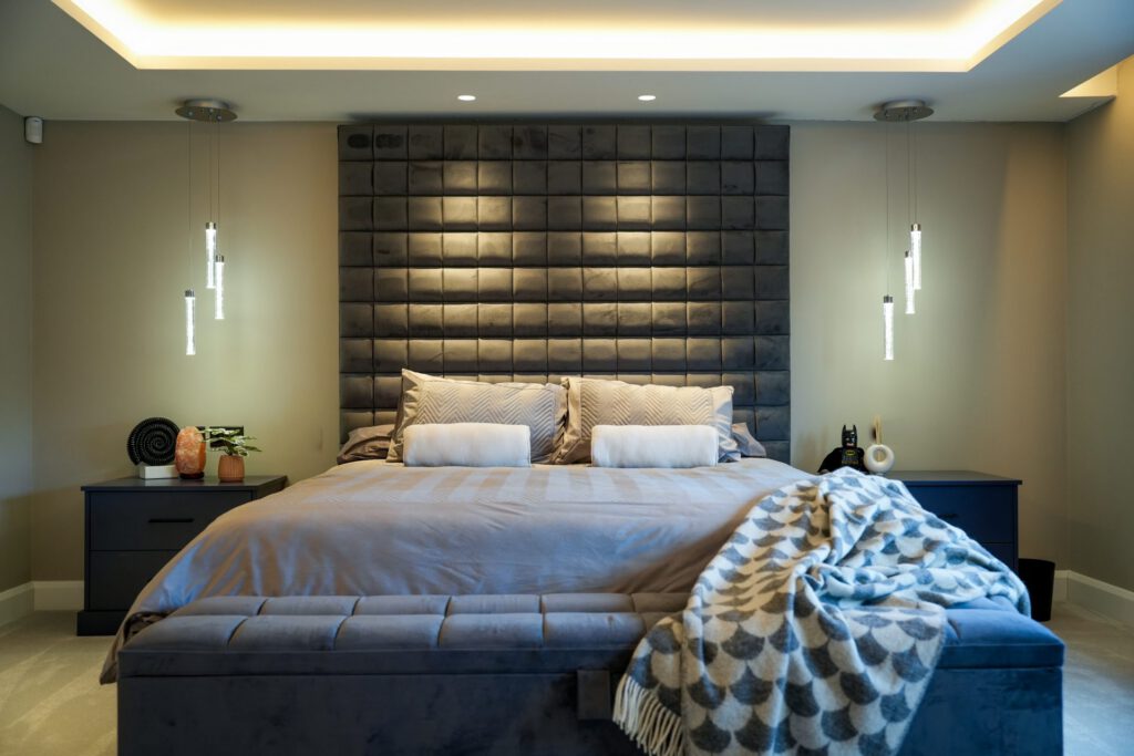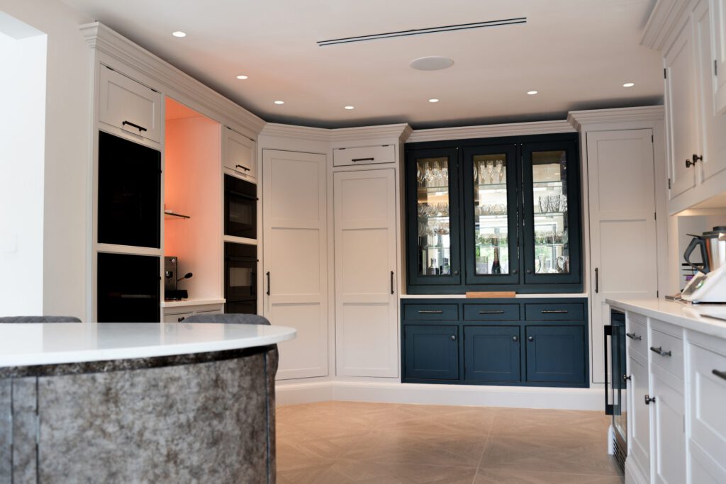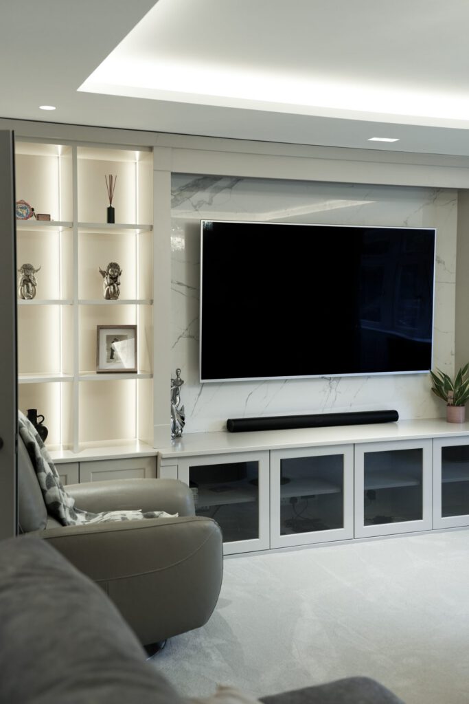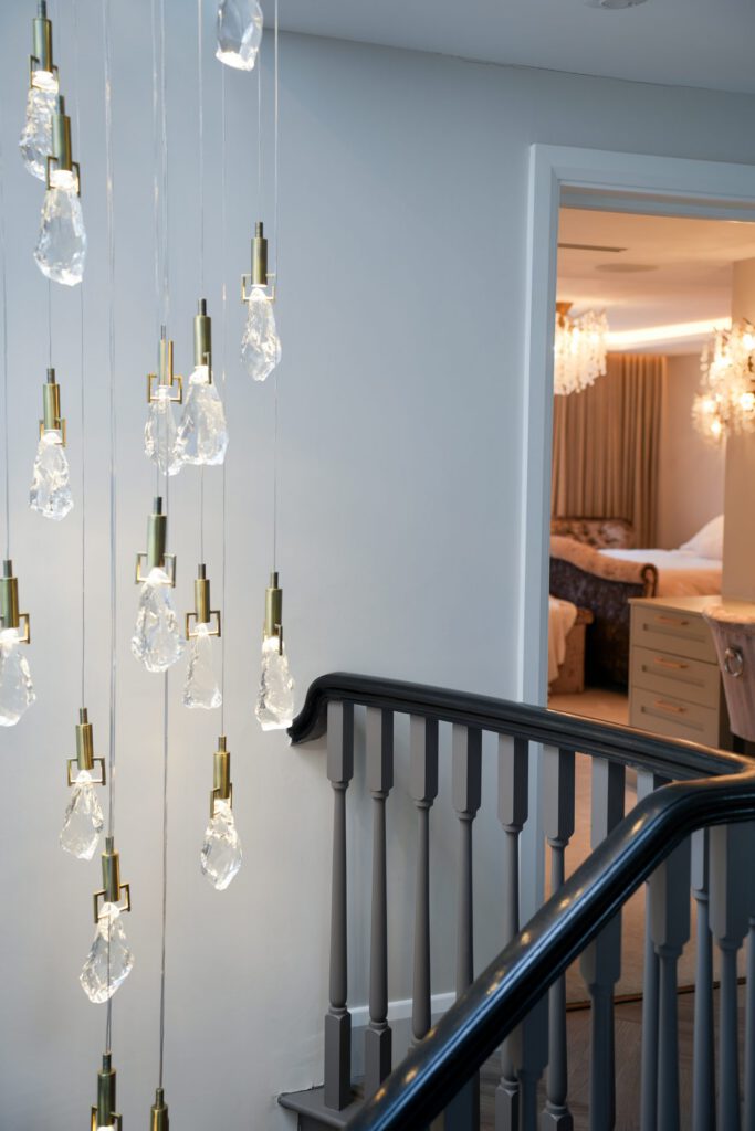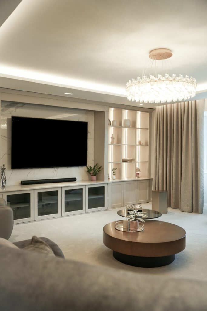 The interior design was guided by a desire for calm, relaxing spaces with thoughtful pops of colour. The clients wished to retain some of their existing furniture, which we carefully integrated into the new design. In some areas, like the children’s playroom, we had full creative freedom, resulting in a vibrant, playful haven bursting with colour and character.