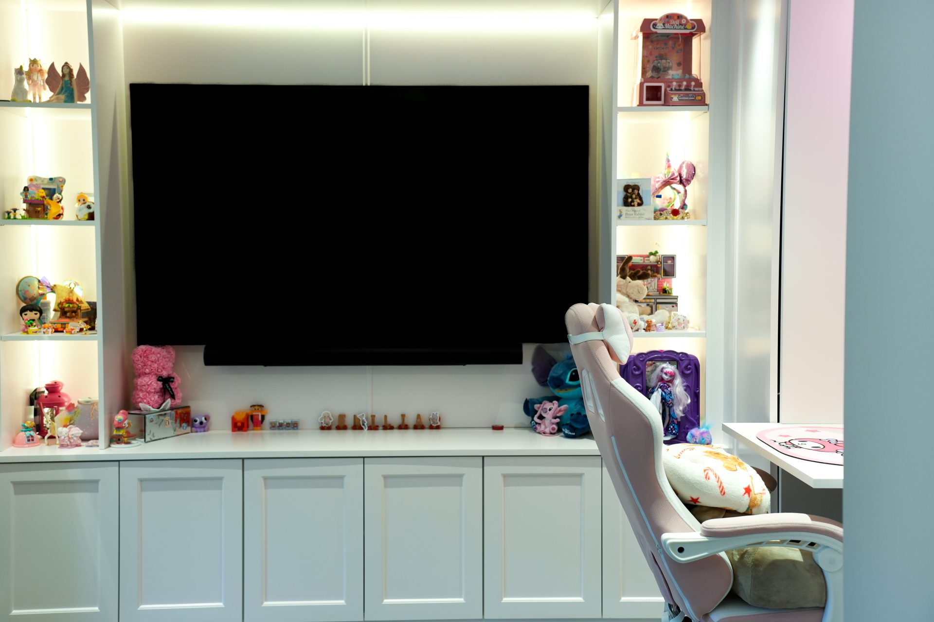 The interiors were shaped around a sense of calm and ease: soft, restful spaces layered with considered moments of colour. Much-loved existing furniture was thoughtfully woven into the new design, grounding the home in familiarity while allowing it to evolve. Elsewhere, creativity was given free rein, most notably in the children’s playroom, where colour, energy and imagination come together to form a joyful, character-filled retreat.