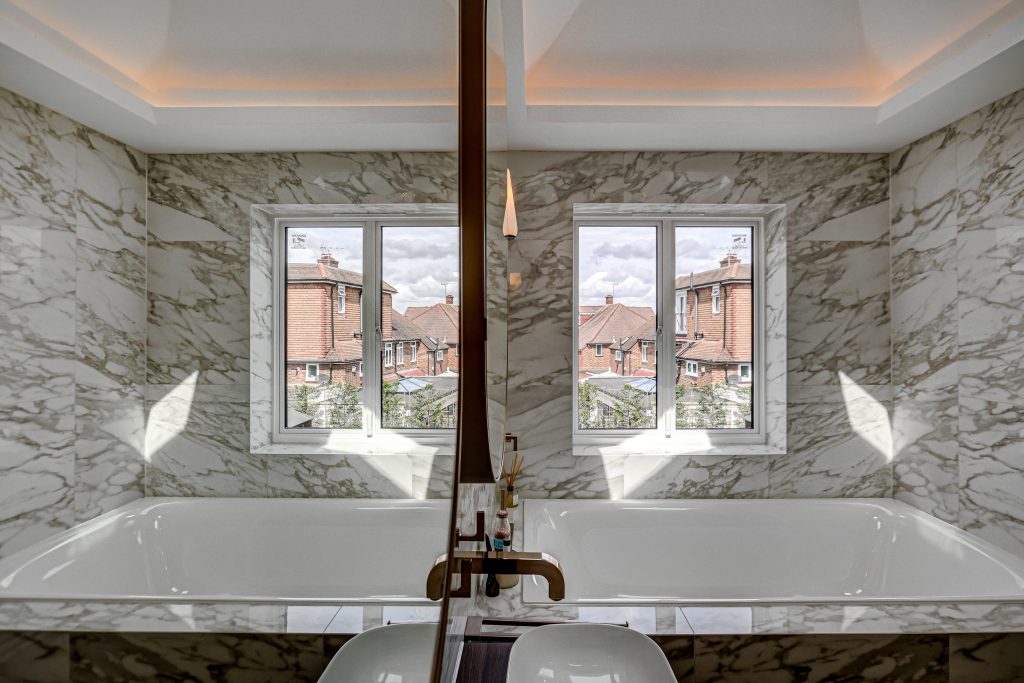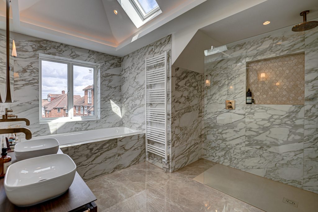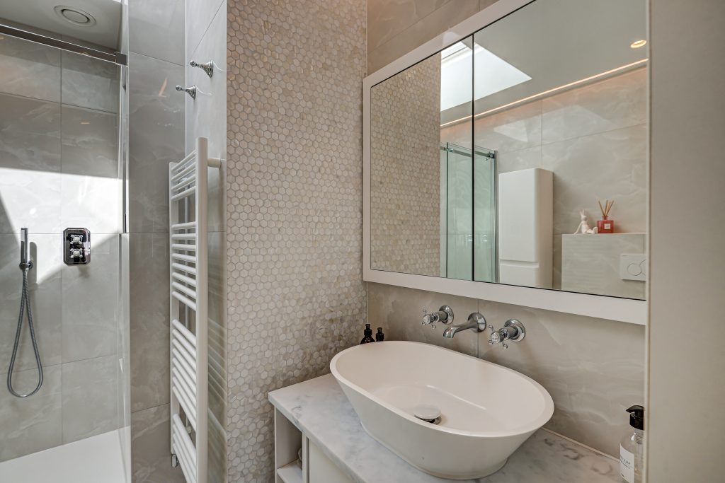 Above, the loft conversion adds a layer of luxury, with bespoke finishes and carefully considered materials that balance style with lasting functionality. Light dances across surfaces, highlighting the clean lines, rich textures, and subtle touches that make the interiors feel both contemporary and enduring.