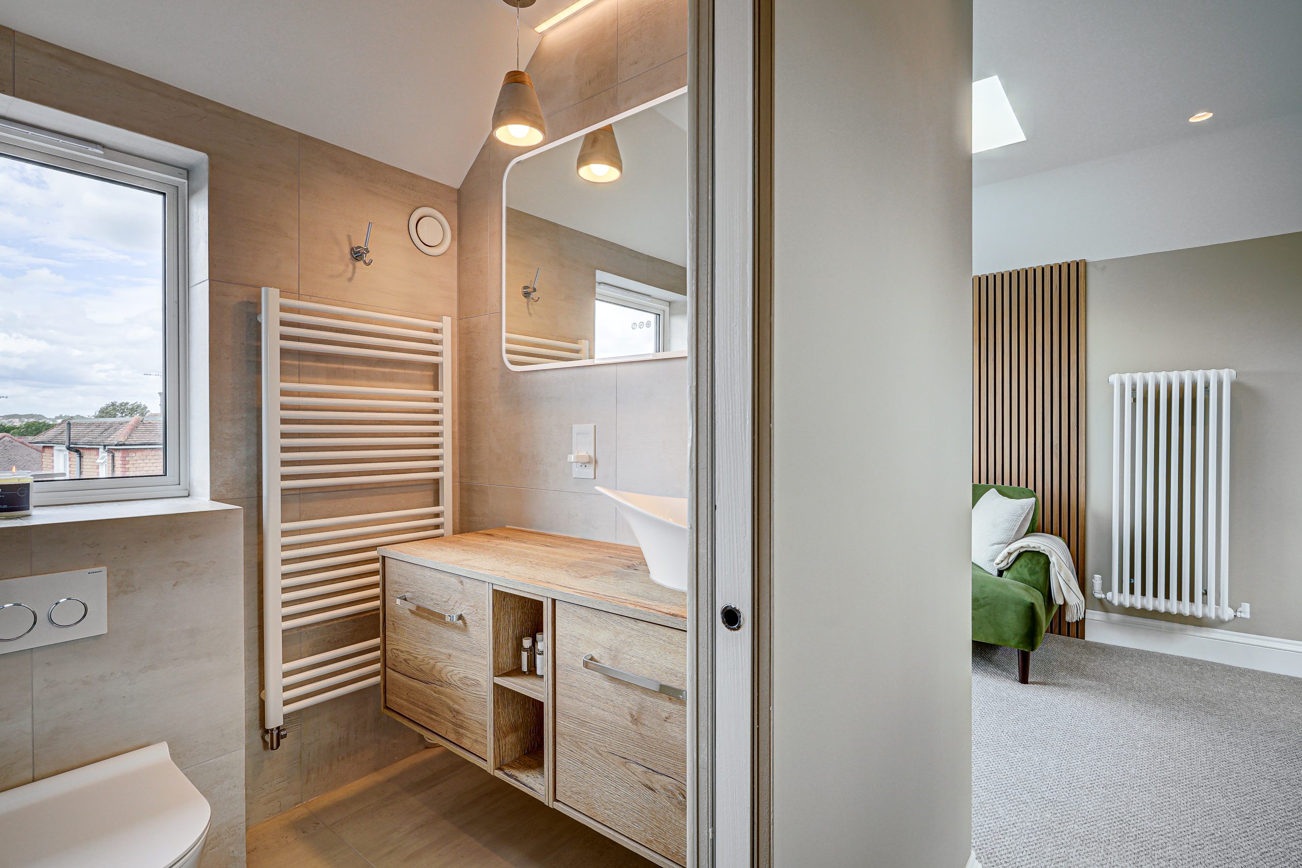 Above, the loft conversion adds a layer of luxury, with bespoke finishes and carefully considered materials that balance style with lasting functionality. Light dances across surfaces, highlighting the clean lines, rich textures, and subtle touches that make the interiors feel both contemporary and enduring.