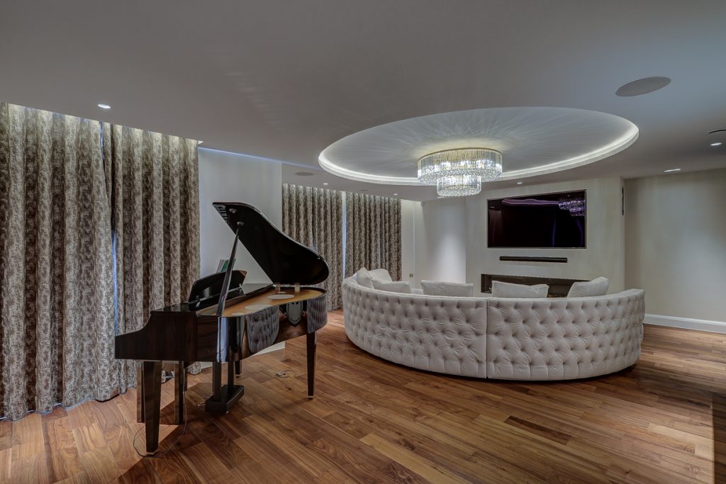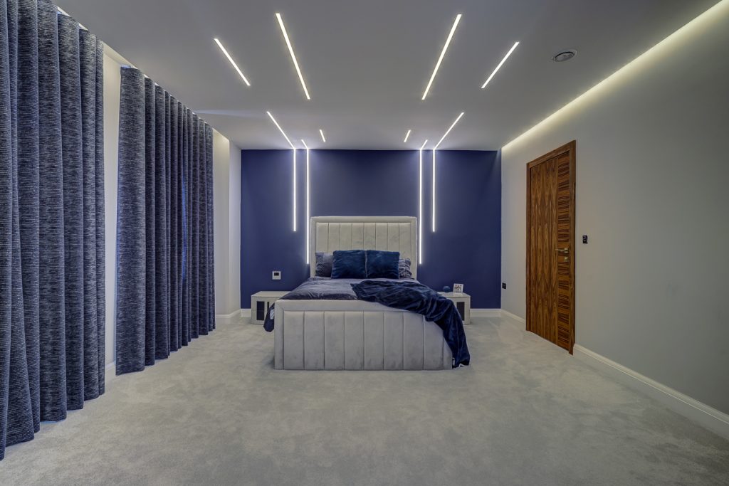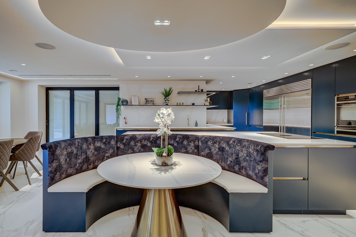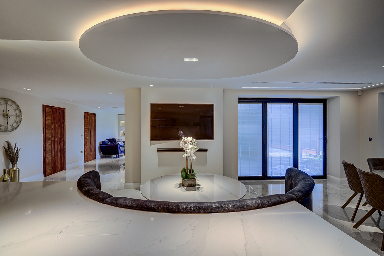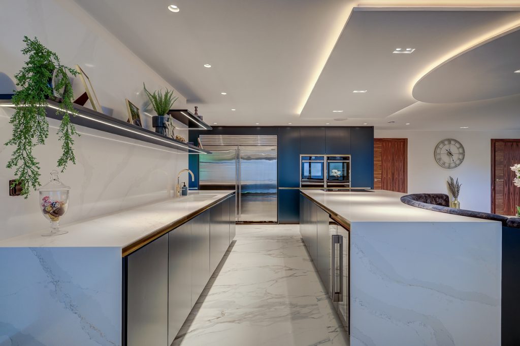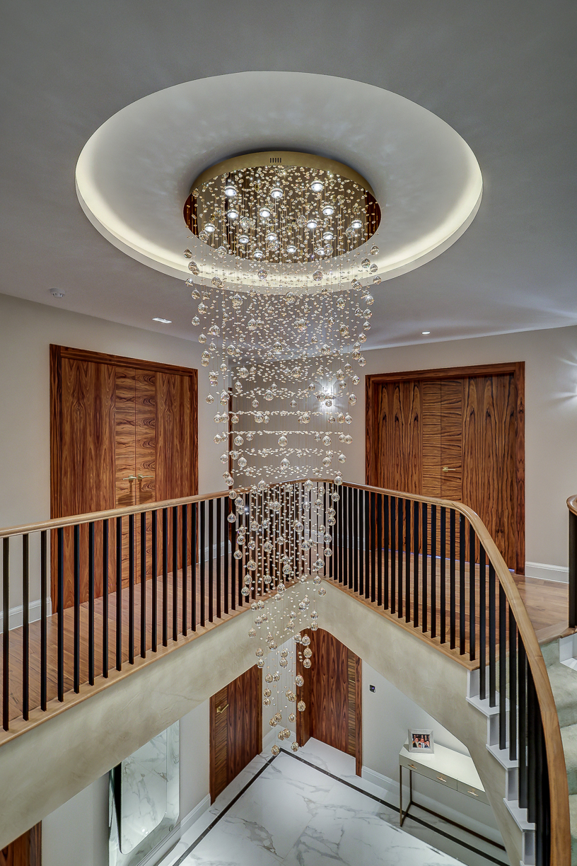 This self-designed family home is a vision in motion, a forever home still unfolding, yet already commanding attention with its quiet sophistication. Sunlight pours through expansive windows, tracing the curves of sweeping ceiling coffers and casting gentle shadows that dance across each room. Integrated lighting accentuates these arcs, creating a soft, ambient glow that makes the architecture itself feel alive.