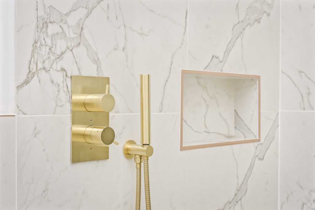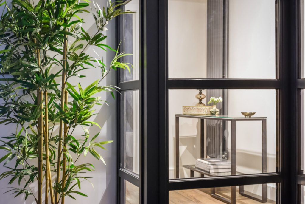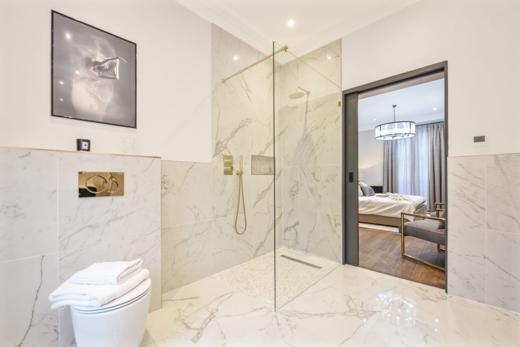 A restrained palette of black, white, and soft greys sets the tone throughout, allowing sleek finishes and tailored details to take centre stage. Clean lines and considered materials create a sense of calm confidence, while subtle references to the building’s heritage ground the design in its urban setting.