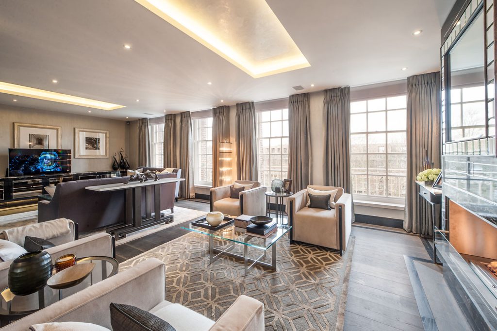 This four-bedroom apartment has been meticulously reimagined to the highest standard, emerging as one of the finest residences in the square. From the moment you step through the double-height entrance hall, the scale and elegance of the home command attention, an introduction to a space where every detail has been considered with precision.