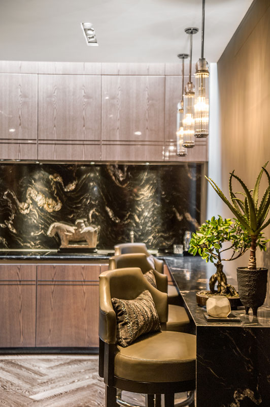 Rich marble floors reflect light across the space, while bespoke cabinetry and designer fixtures combine form and function with effortless elegance. Each room is a study in balance, where grandeur meets comfort, and luxury feels both deliberate and lived-in.