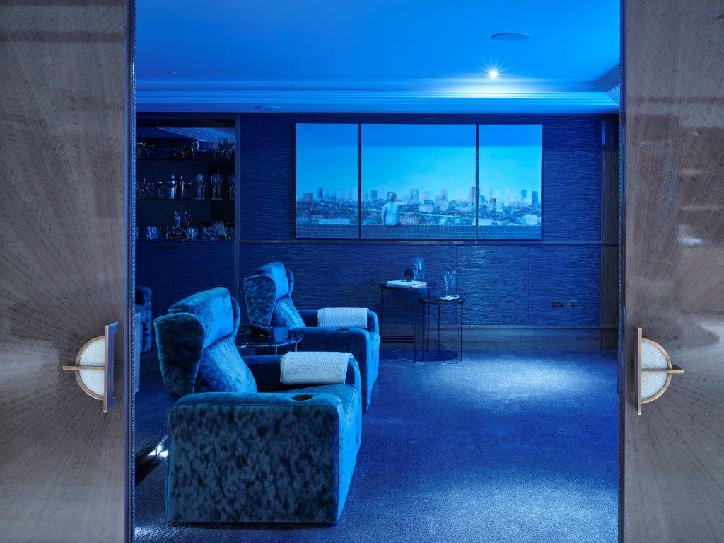 Sunlight spills across marble floors, casting patterns that dance over bespoke woodwork and designer fixtures. Bedrooms open as private retreats, each with its own lavish ensuite, offering calm and sanctuary within the city’s pulse. Beyond, the home comes alive: the swimming pool shimmers in quiet reflection, the spa exudes serenity, and the cinema room transforms into a stage for unforgettable evenings.